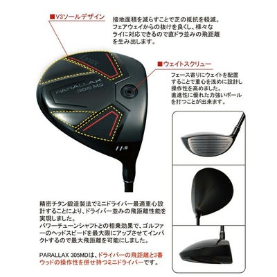 「PARALLAX 305MD」(パララックス 305エムディー)は、ドライバーの飛距離3番ウッドの操作性を併せ持つミニドライバー。