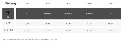 ●*ShureFIt Hosel ポジションがA1に設定されている時の標準のライ角です。