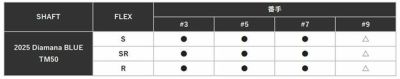 ※●は完成品クラブおよびカスタムメイドクラブでの展開です。△はカスタムメイドクラブのみの対応となります。