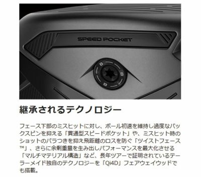 フェース下部のミスヒットに対し、ボール初速を維持し過度なバックスピンを抑える「貫通型スピードポケット」や、ミスヒット時のショットのバラつきを抑え飛距離のロスを防ぐ「ツイストフェース?」、さらに余剰重量を生み出しパフォーマンスを最大化させる「マルチマテリアル構造」など、長年ツアーで証明されているテーラーメイド独自のテクノロジーを「Qi4D」フェアウェイウッドでも搭載。