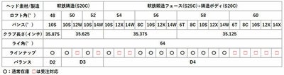 ヘッド素材軟鉄鋳造(S20C)軟鉄鍛造フェース(S25C)+鋳造ボディ(S20C)