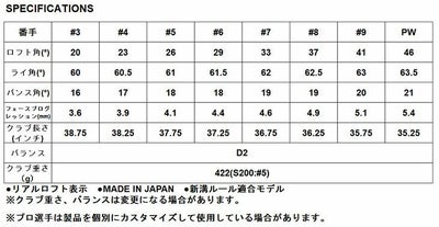 ※クラブ重さ、バランスは変更になる場合があります。