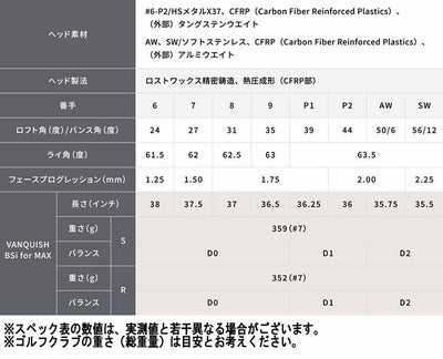 4. ブリヂストン ゴルフ245MAX アイアンVANQUISH BSi for MAX カーボンシャフト#7~P2(5本セット)BRIDGESTONE GOLF