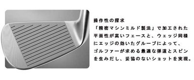 「精密マシンミルド製法」で加工された平面性が高いフェースと、ウェッジ同様にエッジの効いたグルーブによって、ゴルファーが求める最適な弾道とスピンを生みだし、妥協のないショットを実現。