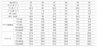 クラブ重さ(g)FT-40i334339348354361370