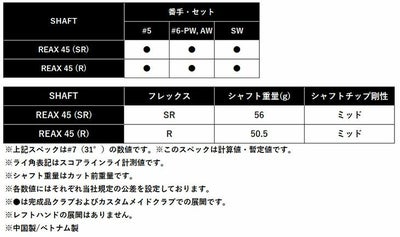クラブ重量REAX45(SR)[#5] 約337g / [#7] 約352g