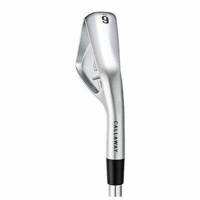 今回のリニューアルに合わせて、X FORGEDのロゴデザインと、キャロウェイロゴの配置が刷新されました。 「X」の一部には、日本モデルの象徴としてJAPANの頭文字であるアルファベットのJを思わせるラインを取り入れつつ、筆で書かれた漢字に見られる“跳ね”の表現を意識しています。フォント全体も刀をモチーフとしたシャープで緊張感のあるデザインとなっており、日本らしい繊細さと力強さを併せ持つ表情に仕上げられています。 バックフェースの肉厚な三角部分にはシェブロンマークのみを配置。CALLAWAYの文字は、直線的なブロックロゴとしてホーゼル部分に刻印されています。 番手構成はI#4~9、PWの7本。ロフトはX FORGEDアイアンよりも3~4度ストロングな設定。 「1枚ものの軟鉄鍛造アイアンを使いたいが、もう少し飛距離も欲しい」というプレーヤーのニーズに応えるモデルで、ストロングロフトによるボールの上がりにくさは、低重心設計によってカバーされています。