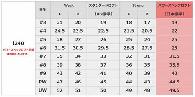 (US仕様)ロフト角(°)1922.52629.53337414550