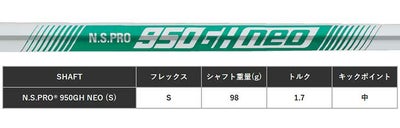 ※N.S.PROR MODUS3 TOUR 105 (S) およびN.S.PROR 950GH NEO (S)のスペック数値 (シャフト重量、トルク、キックポイント)は日本シャフト株式会社の公表値です。