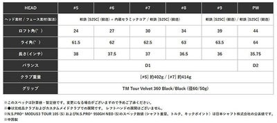 ※●は完成品クラブおよびカスタムメイドクラブでの展開です。 レフトハンドの展開はございません。