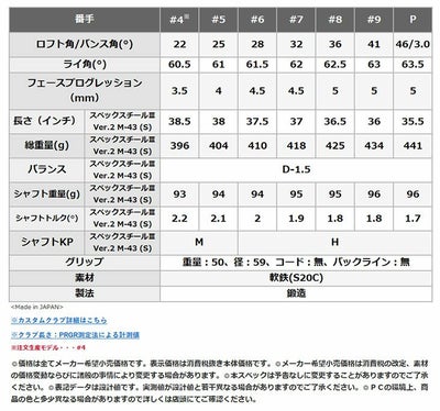 4. プロギア PRGR 01アイアンPRGR純正 スペックスチールⅢ Ver.2 M-43 (S)シャフト#6~Pw(5本セット)