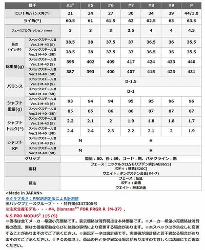 ※注文生産モデル・・・#4, DiamanaTM FOR PRGR R(M-37), N.S.PRO MODUS3 115 (S)