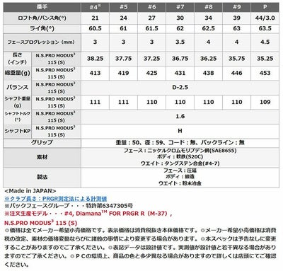 ※注文生産モデル・・・#4, DiamanaTM FOR PRGR R(M-37), N.S.PRO MODUS3 115 (S)