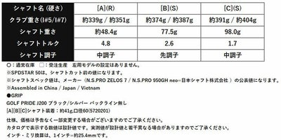 ※※シャフトスペック値は、メーカー(N.S.PRO ZELOS 7 / N.S.PRO 950GH neo=日本シャフト株式会社 )の公表値になります。