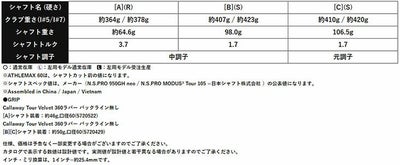 ※※シャフトスペック値は、メーカー(N.S.PRO 950GH neo / N.S.PRO MODUS3 Tour 105 =日本シャフト株式会社 )の公表値になります。