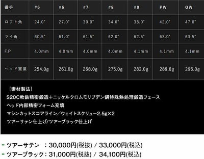 全て新しい形状と構造、アメリカ本ツアーでのフィードバックでこれまで培ってきた経験と知識を凝縮させたツアーモデルシリーズがラインナップされました。「ツアーキャビティー TC」「ツアーエアー TA」「ツアーポケット TP」のそれぞれ異なる3つのモデルの中から、あなた好みのアイアンを選択することができます。