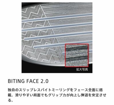 独自のスリップレスバイトミーリングをフェース全面に搭載。滑りやすい局面でもグリップ力が向上し弾道を安定させる。