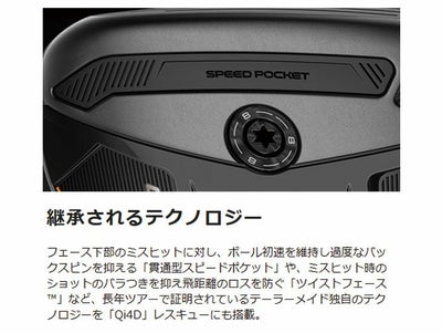 フェース下部のミスヒットに対し、ボール初速を維持し過度なバックスピンを抑える「貫通型スピードポケット」や、ミスヒット時のショットのバラつきを抑え飛距離のロスを防ぐ「ツイストフェース?」など、長年ツアーで証明されているテーラーメイド独自のテクノロジーを「Qi4D」レスキューにも搭載。