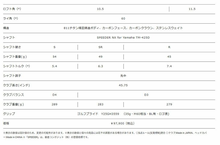 ヤマハオリジナル SPEEDER NX for Yamaha M-425D カーボンシャフト