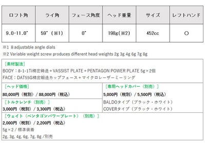 テーパーフェース設計で斜面抵抗が柔らぐロースピンのボールが飛び出る設計となっています。GT2に比べて本体の重心設計を採用し、ソール面とバックフェース側にペンタゴンパワープレートを配置させることで、インパクト時にフェースがボールに当たり負けしないヘッドバランスを実現させたモデルへと進化しています。