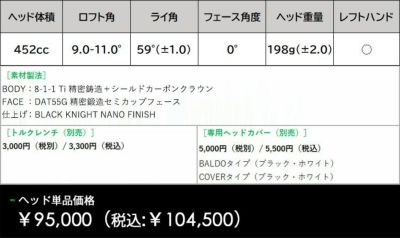 BALDO UNUS MODEL DD ドライバー スペック