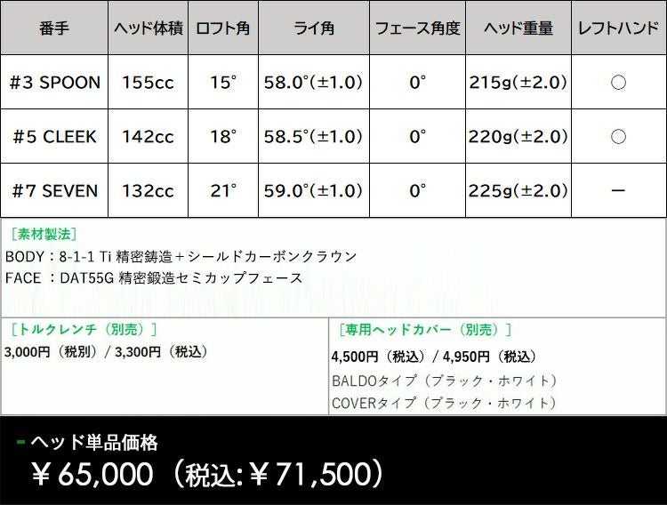 | BALDO UNUS MODEL FD FAIRWAY WOOD スペック |