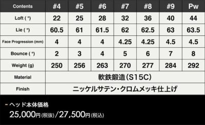 FG 101CB FORGED アイアン スペック