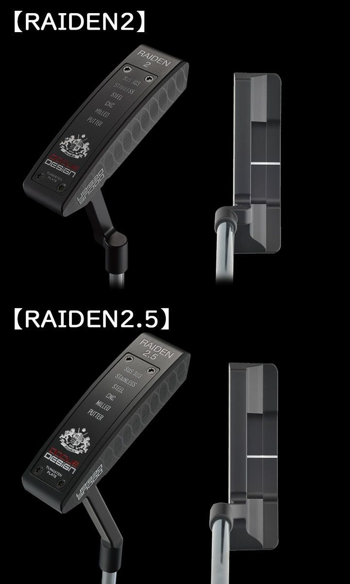 JET Black Putter 【新開発重量可変ソールプレート】 ソールに配置した3種類の可変プレートでプレーヤーのパッティングタイプにマッチした重量に調整可能です。 タングステン装着380g、ステンレス365g、アルミニウム装着350gと3種類の重量が選べる。 【ヘッド素材はSUS303ステンレス使用】 ツアーでも使用率の高いSUS303、硬度のある素材で弾き感と手応えがあるが、CNC削り出しとフェースミーリングで程よいマイルド感も両立する。 【ヒール重心設計】 ピンタイプ2機種はタングステンプレートを装着する事によりヒール重心になり、ヒールを軸にパッティングすることによりストロークが安定する。 |