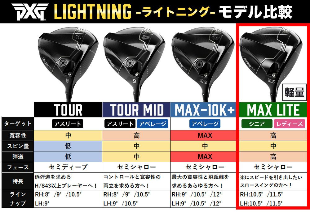PXG Lightning Max Lite 軽量ドライバー ライトニング マックス ライト |