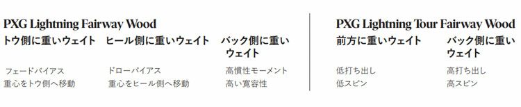 PXG Lightning FW/tourFW の仕様