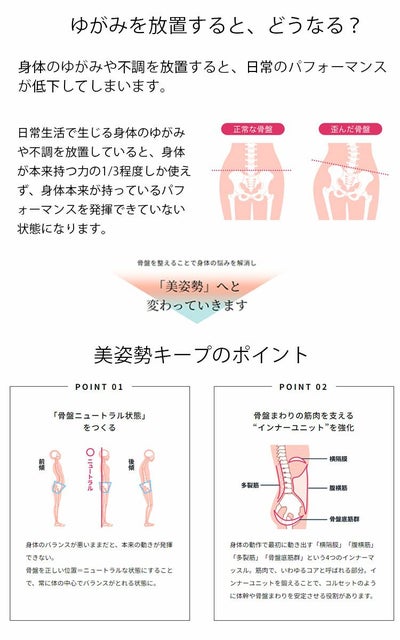 締め付けることなく骨盤を正しい位置に促し「骨盤ニュートラル状態を作り出します。