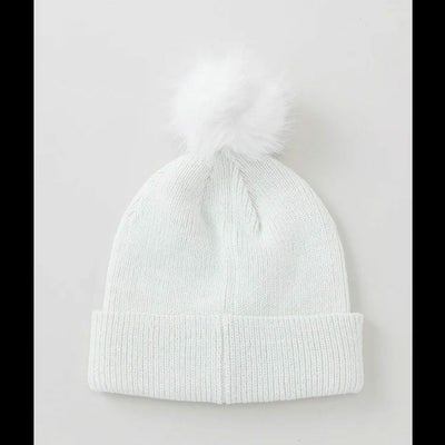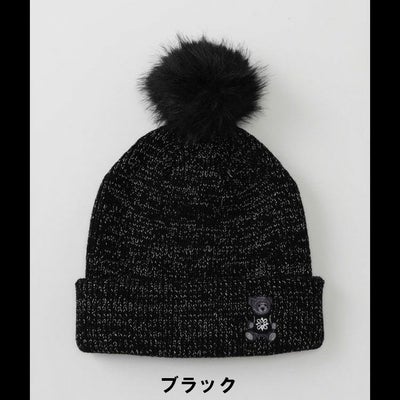 トップにつけた毛足の長いファーの梵天でシーズンらしさと可愛さを演出できる、ベアラメニットビーニー。