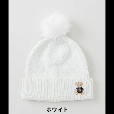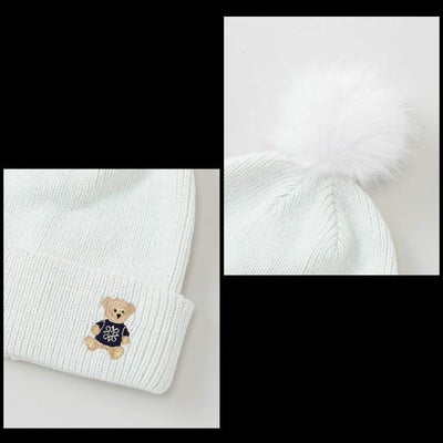 シンプルななりがちな防寒シーズンのコーディネートにも映える、テディベアがワンポイントになったニットキャップです。
