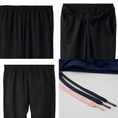 ウエスト紐にはロゴ入りスピンドルを採用、サイドに転写ロゴが入ったスタイリッシュなジョガーパンツ。たパターンや縫製で、移動時のくつろぎやすさを最大限に考えられたシリーズ。