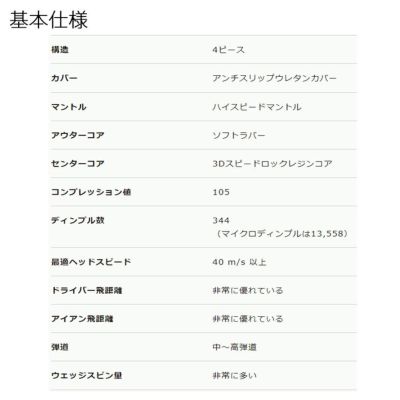 高MOI(慣性モーメント)設計によりスピンがほどけにくく、風に負けない強弾道を実現したハイエンドモデルです。