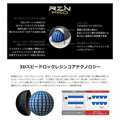 RZN PROは、インナーコアにレジン素材を採用したプロ仕様の4ピース構造のハイエンドツアーボールです。ドライバー飛距離はもちろん、ウェッジのスピン量を最大化した新しいモデルを是非お試しください。