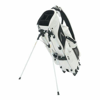 従来のプッシュ式スタンドキャディバッグの不便さを解消するワンタッチ式スタンド。