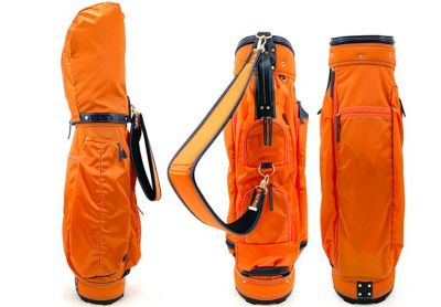 鮮やかな色合い、上品な光沢、きめ細かく丈夫な高密度ツイルナイロン生地と各部に牛革を用い、 しっかりした縫製で、使いやすさと共にお洒落で耐久性も抜群なキャディバッグです。 。