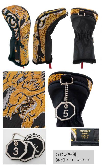 6. 【オーダーメイド】金襴生地ヘッドカバーフェアウェイウッド用 金龍 銀龍