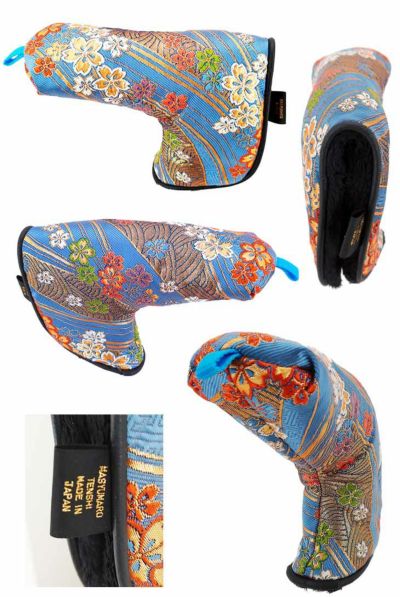 【オーダーメイド】 金襴生地 パター用ヘッドカバー 青海波に小桜 ブルー