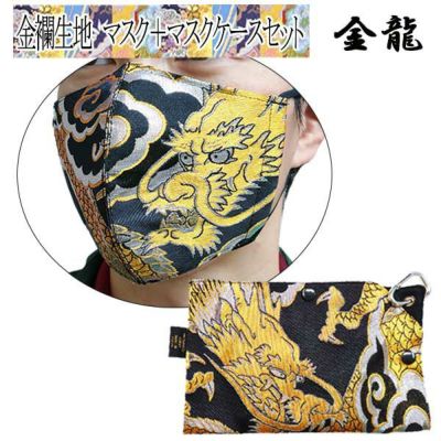 商品名金襴生地 金龍 マスク+マスクケースセット