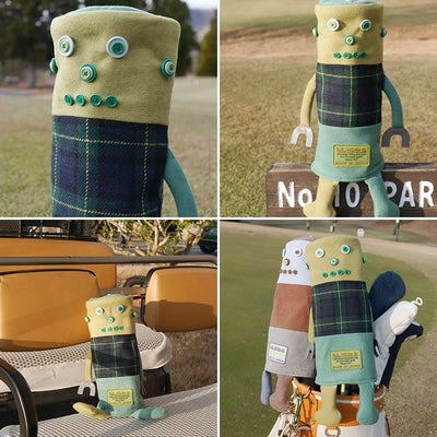 ロボットをイメージしたゴルフ場の緑に映えるグリーン色のヘッドカバーカメロンくん。