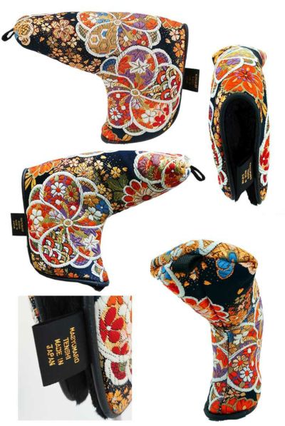 【オーダーメイド】 金襴生地 パター用ヘッドカバー ねじ梅濃紺