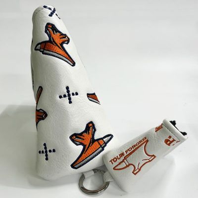 6. T.P.MILLS TPミルズ ピン型 パターカバーANVIL & CROSS DOT w/ CHARM PUTTER COVERHTPC-000026 WHITE/ORANGE ゴルフ