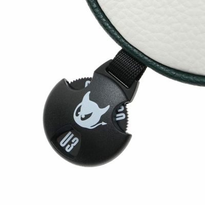 表面に細かなシボ加工を施した合成皮革を使用し、クリーンな配色と立体的なロゴデザインが目を引くユーティリティ用ヘッドカバーです。