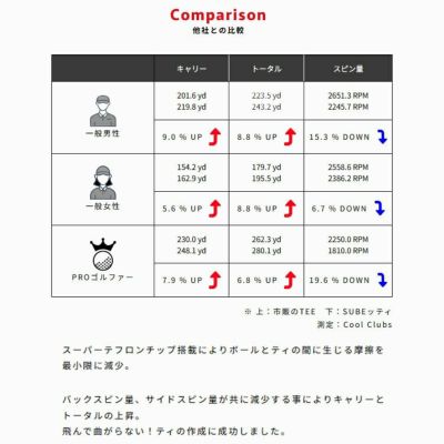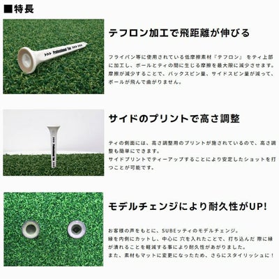 SlipTeeは、R&Aルールに適合した海外仕様ゴルフティー。 SUBEッティと同等の性能を備え、飛距離や方向性の向上のため最大限に摩擦を抑える設計。