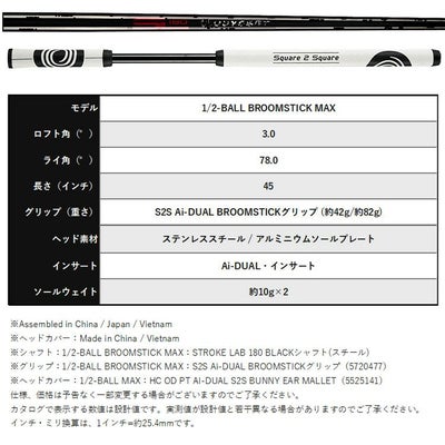 オデッセイ最新アライメントモデルに、45インチ仕様・ゼロトルク「Ai-DUAL Square 2 Square CRUISER BROOMSTICK 1/2-BALL MAXパター」が数量限定で登場!