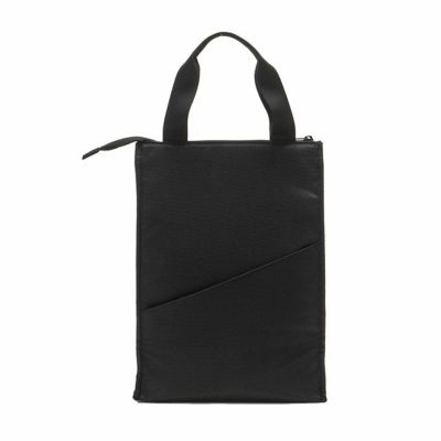 縦長の保冷バッグ。外側はベタポケットでスリム。2Lペットボトル2本収納、猛暑でも安心。