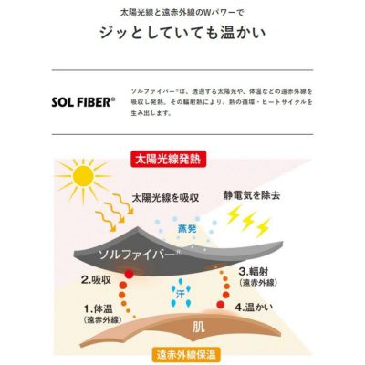 ●SOL FIBER(ソルファイバー)とは、透過する太陽光や、体温などの遠赤外線を吸収し発熱。 その輻射熱により、熱の循環・ヒートサイクルを生み出します。