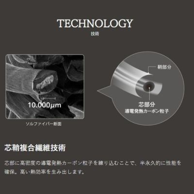 【芯鞘複合繊維技術を採用】 芯部に高密度の導電発熱カーボン粒子を練り込むことで、半永久的に性能を確保。高い熱効率を生み出します。